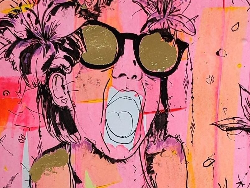 Meine leuchtenden Farben und markanten Konturen verwandeln Papier in eine Bühne aus Neonlicht. Statt einer fotorealistischen Darstellung, rücke ich die Emotionen des Motivs in den Mittelpunkt.